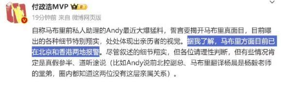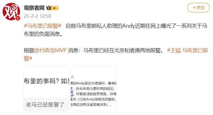 据观察者网,自称马布里前私人助理的Andy近期在网上曝光了一系列关于马布里的负面消息。根据@付政浩MVP 消息:马布里已经在北京和香港两地报警。